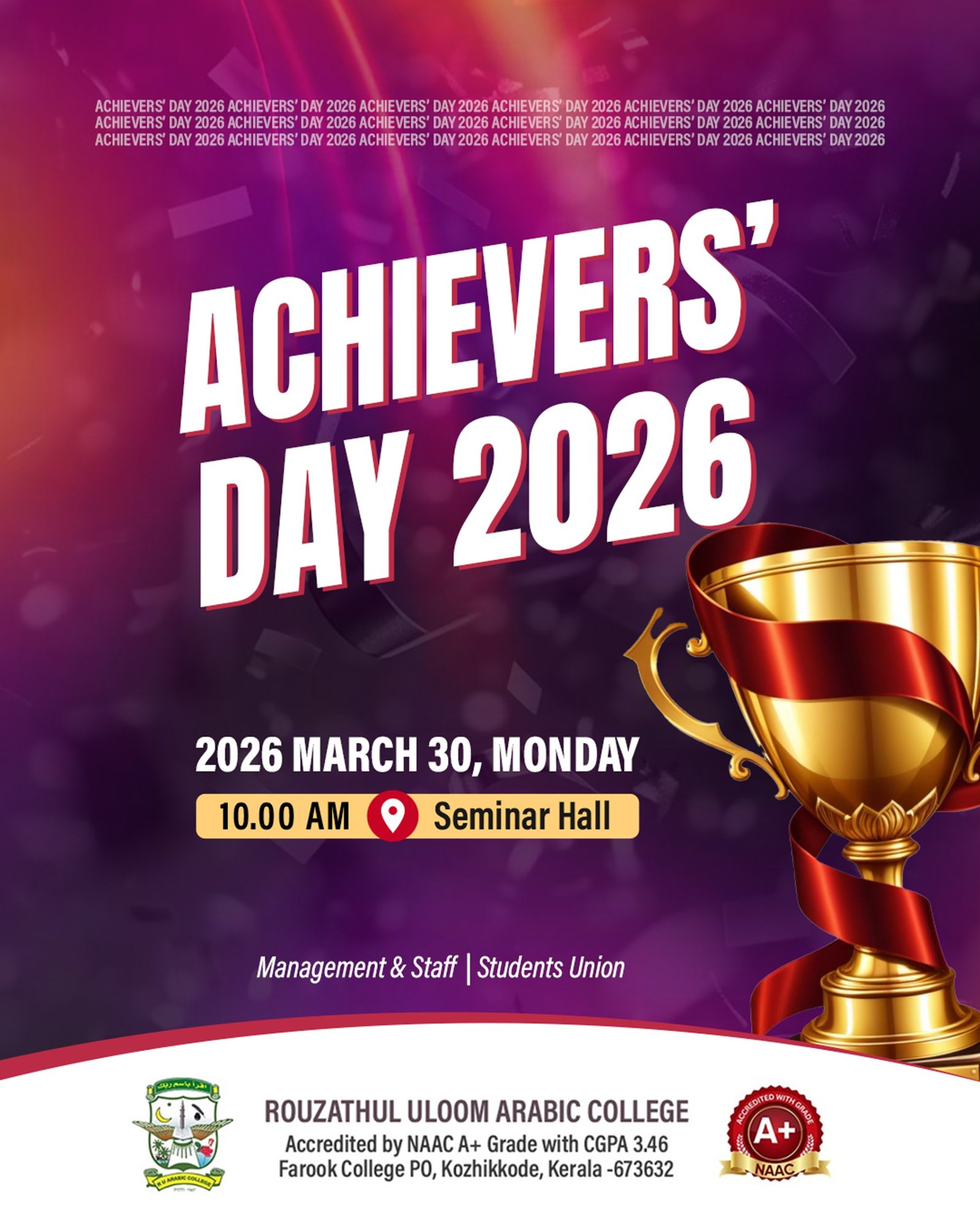 ACHIEVERS DAY 2026 admin 3 2026 March 30 Monday 10 AM @ Seminar Hall admin Orientation on NPTEL and MOOC courses 17 Feb, 2022 News Editor Inauguration of chess competition 17 Feb, 2022 News Editor Orientation on ICT enabled smart classroom 17 Feb, 2022 News Editor HAPPY REPUBLIC DAY 9 Feb, 2022 News Editor SWATCH CAMPUS 27 Jan, 2021 admin ANTIQUE EXHIBITION 20 Jan, 2021 admin